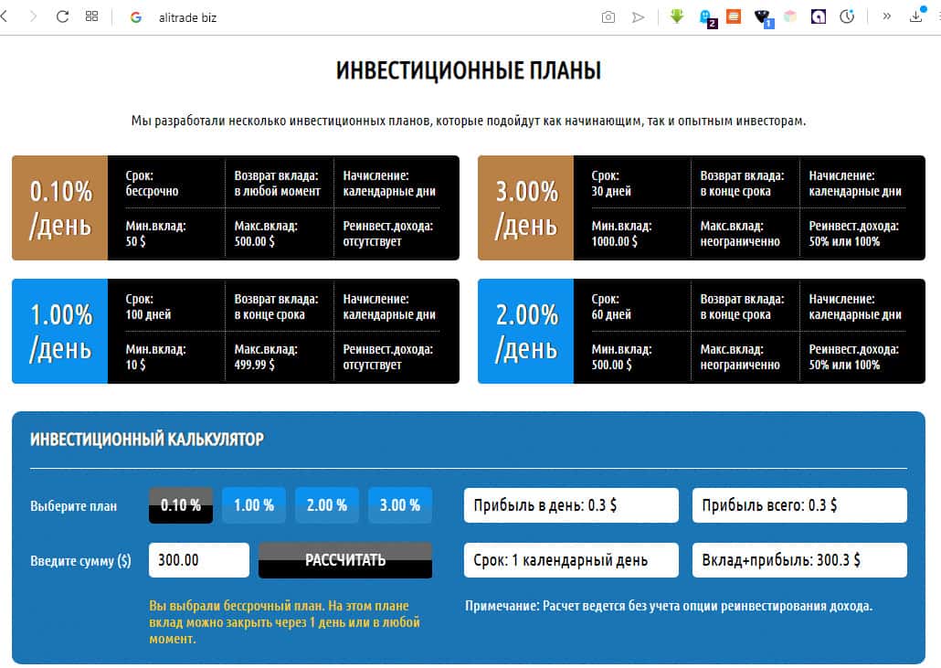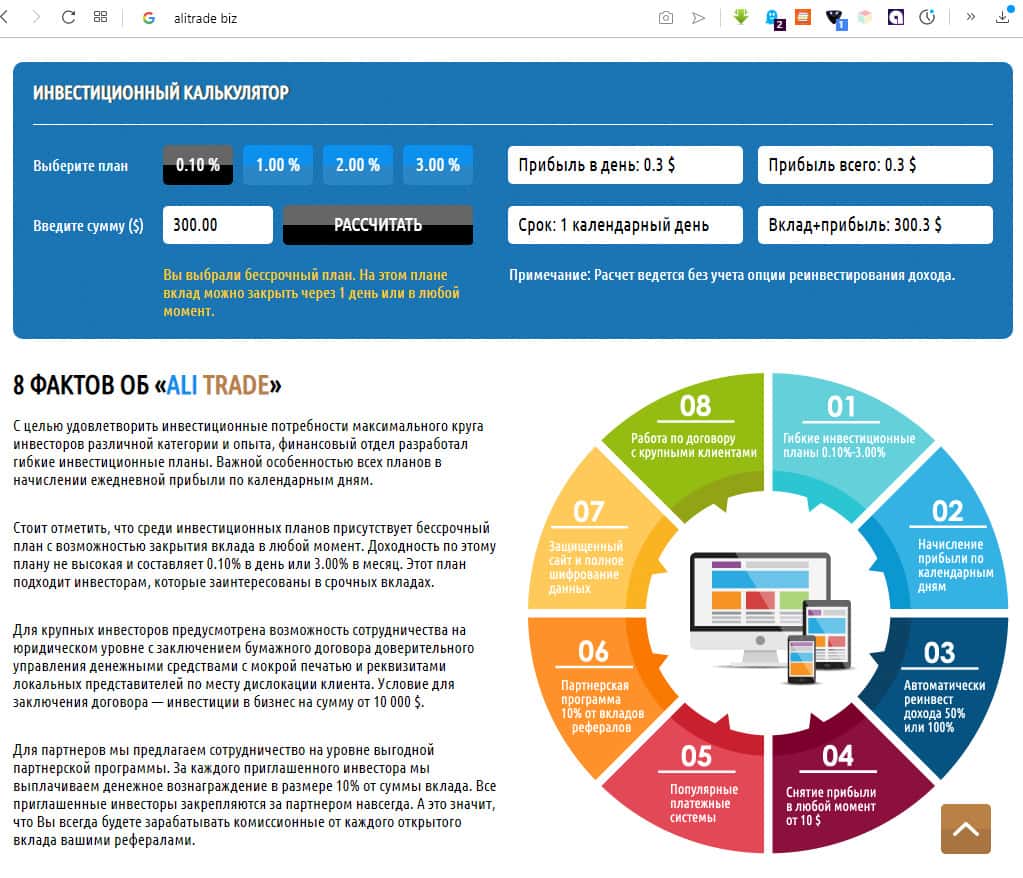Дополнительные сведения и возможности инвестиционной площадки AliTrade