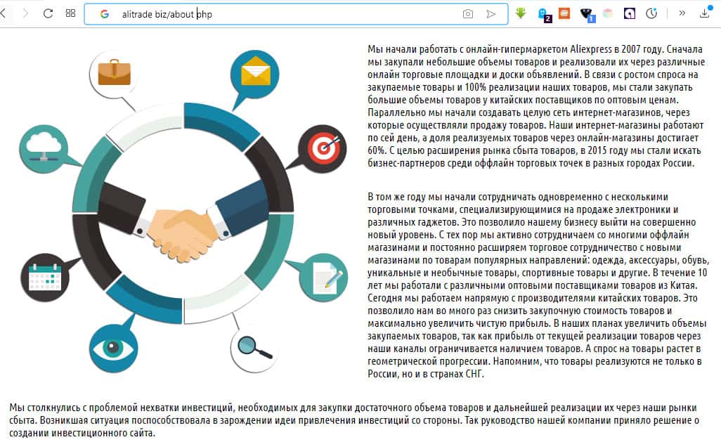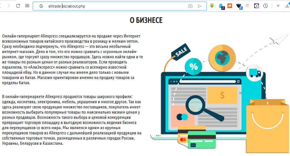 - Непосредственный взгляд на сайт проекта АлиТрейд
