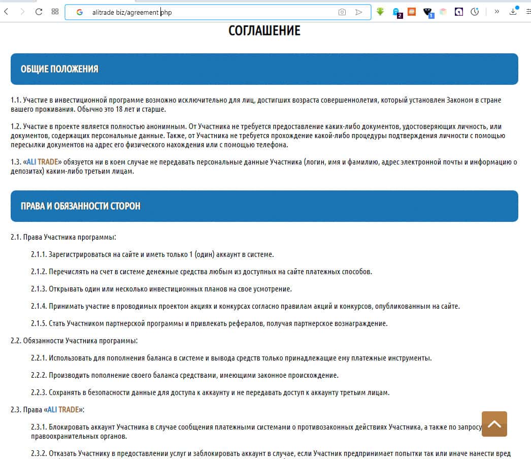 AliTrade - мошенническая инвестиционная площадка, владельцы которой самые обычные мошенники и аферисты. Она построена по принципу финансовой пирамиды для обогащения одних и отбора денежных средств у других людей. Не кормите обманщиков и воров, мы не рекомендуем связываться с лохотроном AliTrade!!!