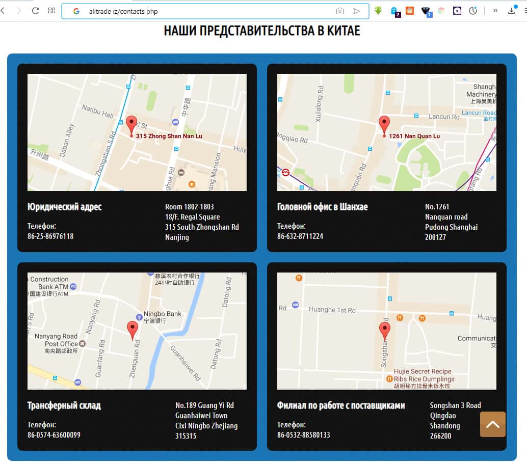 Например, по адресу Room 1802-1803,18/F.,Regal Square,315 South Zhongshan Road,Nanjing,China расположена компания JMC ENTERPRICES LTD. Указанная компания занимается производством нижнего белья. А один из адресов, вообще, указывает на общественный парк в Китае.