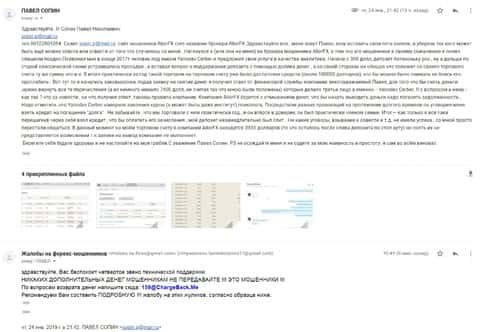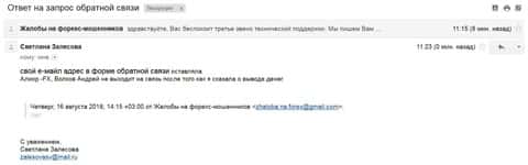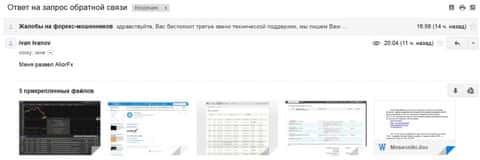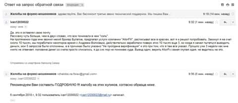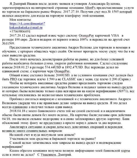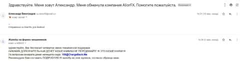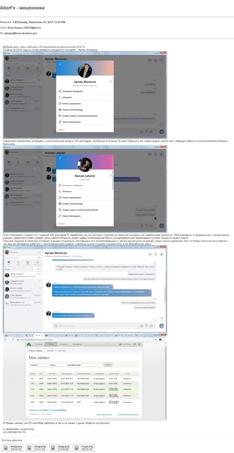 Ниже представлено первоначальное письмо от человека попавшего в аферу брокерской кухни Алиор ФХ.
