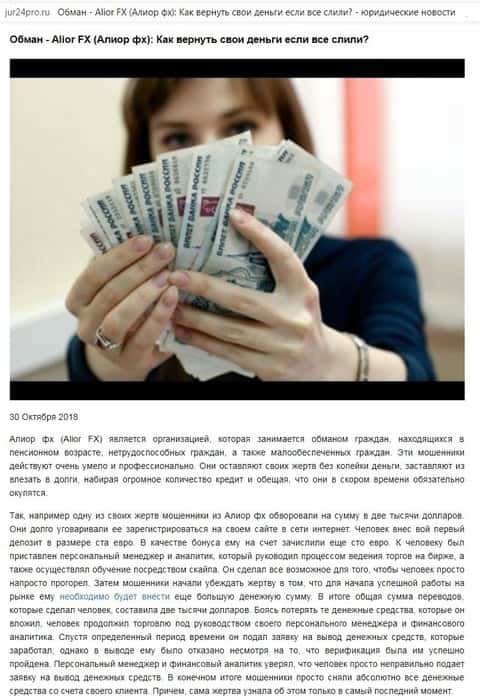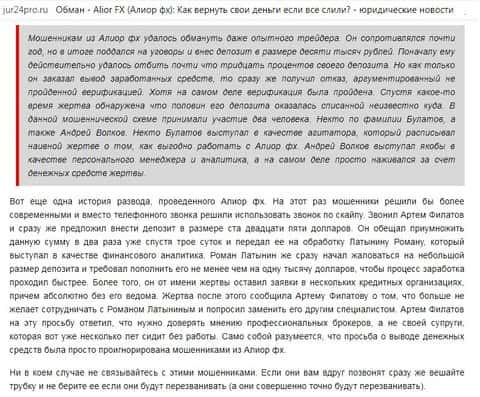 - Веб-ресурс jur24pro ru высказал своё мнение на счёт мошенников Alior FX