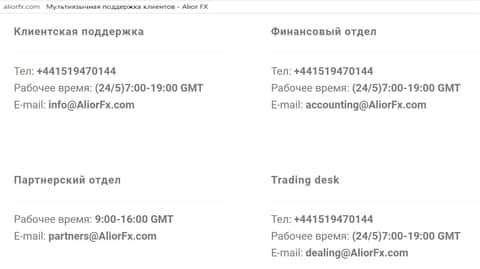 На сайте так же указаны телефоны "поддержки", или же возможных звонарей, которые под эгидой мошеннической конторы Алиор ФХ разводят доверчивых клиентов на деньги. Телефон и адреса электронной почты: