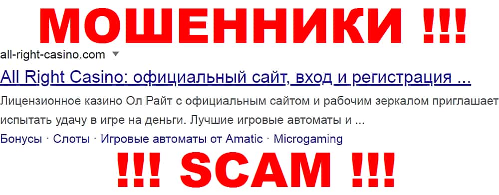- Мобильный лохотрон аферистов Алл Райт Казино