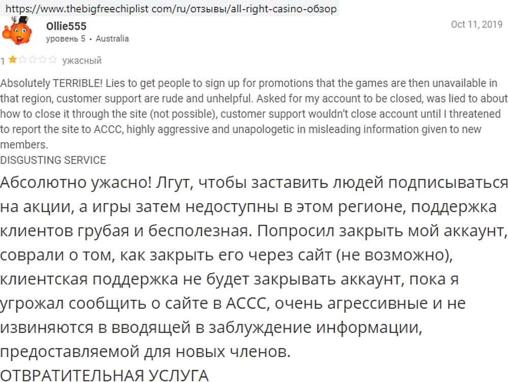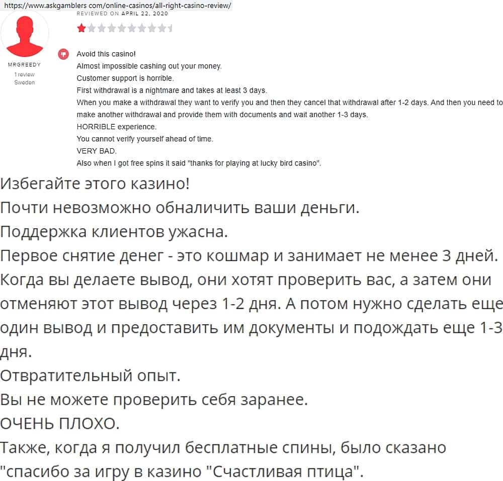- Лживая конторка Алл Райт Казино одурачивает своих клиентов по полной