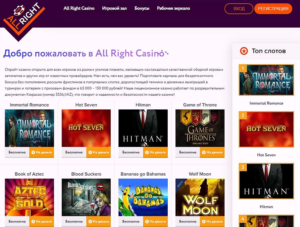 - Официальный сайт шарлатанской игротеки All-Right-Casino
