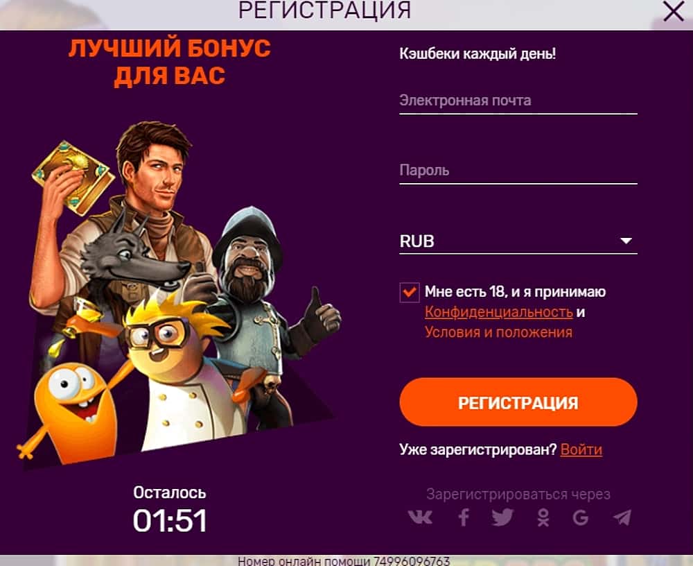 Попадая на главный сайт, оказывается, что необходимо еще раз заполнить регистрационные данные. Здесь форма выглядит побогаче, есть ссылки на клиентское соглашение и можно ознакомиться с политикой конфиденциальности аферистов Алл Райт Казино. Для мотивации шулера прикрепили фальштаймер с надписью бонус.