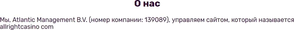 - Политика псевдоконфиденциальности негодяев All-Right-Casino