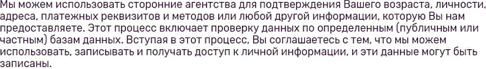 И снова более развернутый пункт антидоговора All-Right-Casino, в отношении политики конфиденциальности. Снова показывают свое наплевательское отношение мошенники All-Right-Casino к тайне личных данных. Информация об игроках сторонними структурами будет пропускаться по неким базам, происхождение которых неопределенно.