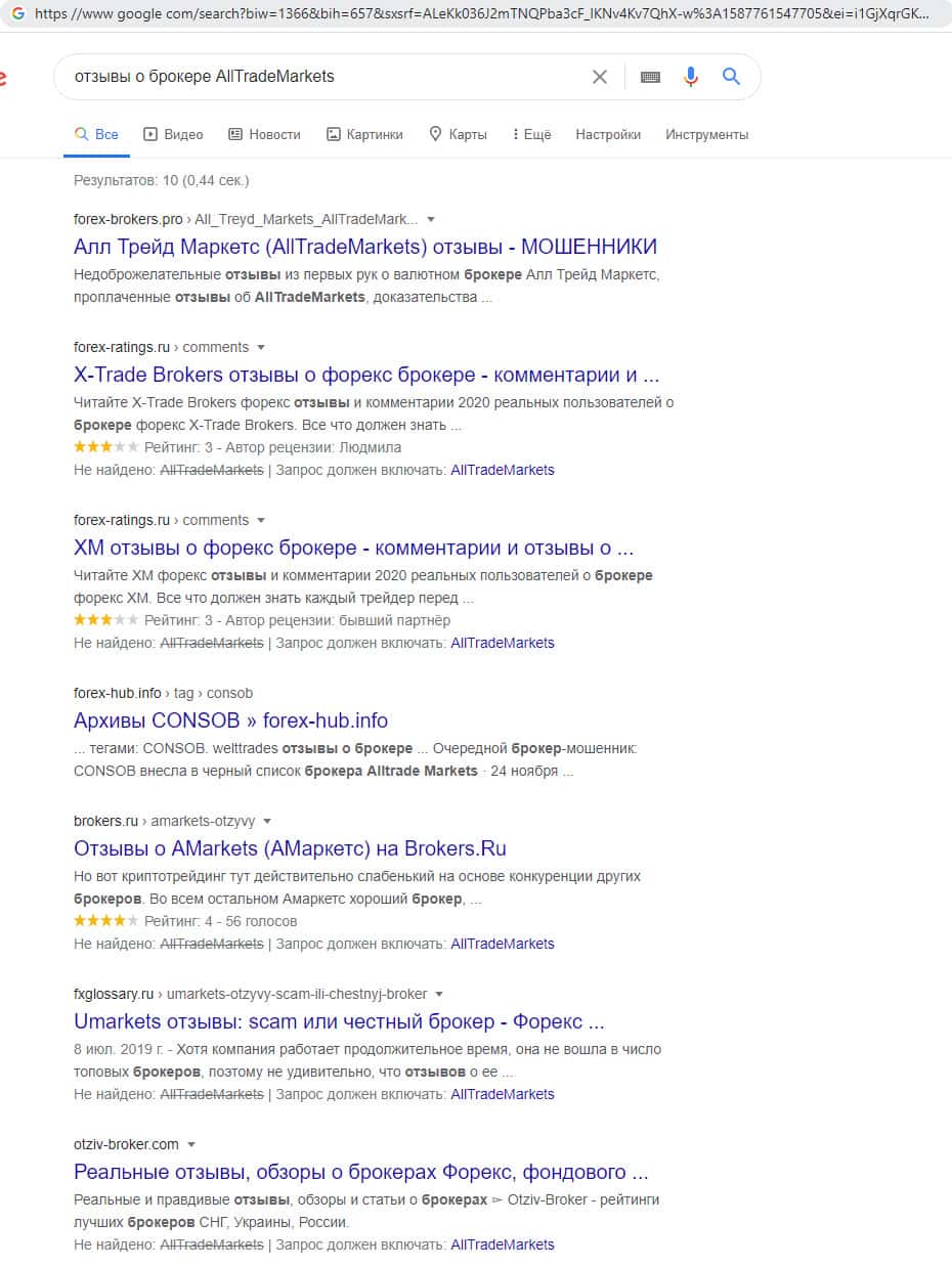 - Отсутствие информации и отзывов на просторах интернета о воровском интернет-сайте мошенников AllTradeMarkets