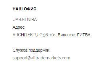- электронная почта support@alltrademarkets com
