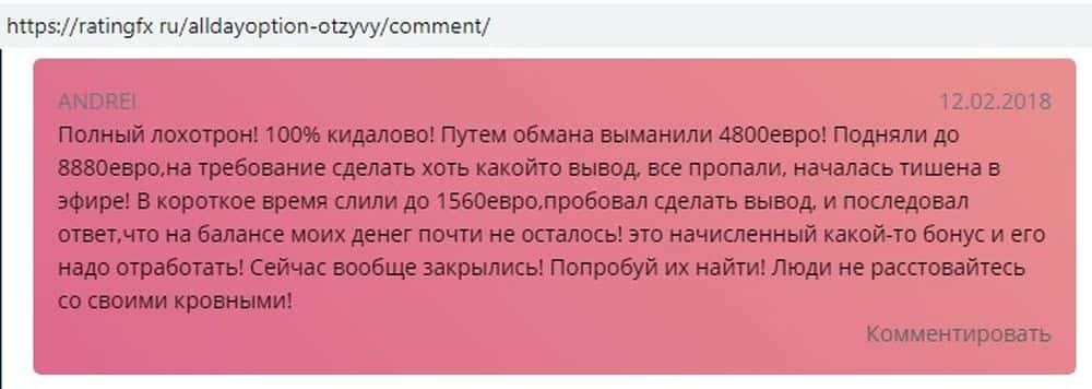 AlldayOption - воры, которые обманывают клиентов, если же они и Вас ограбили или пытались ограбить, то оставьте электронный адрес в форме связи далее, и тогда с Вами свяжутся.