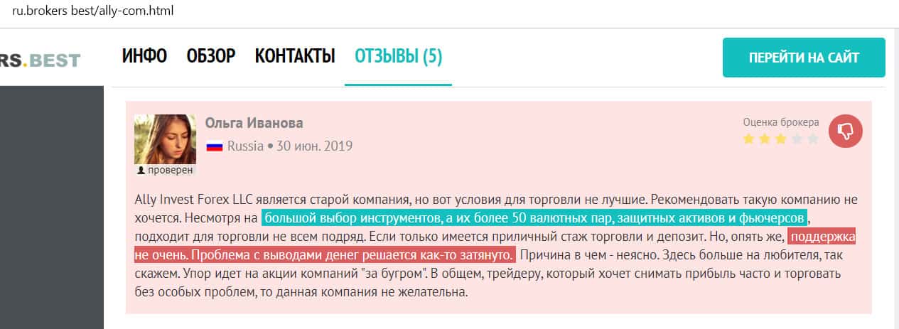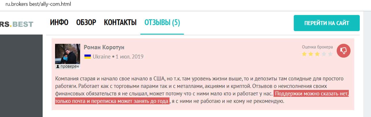На англоязычных ресурсах множество негативных отзывов от иностранных трейдеров, пользующихся платформой Ally