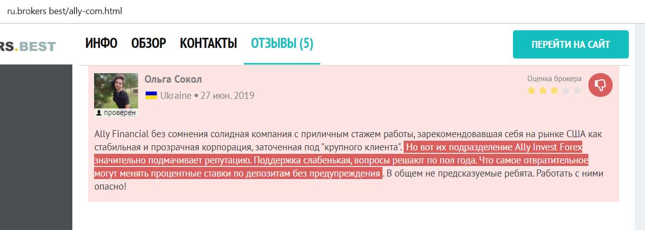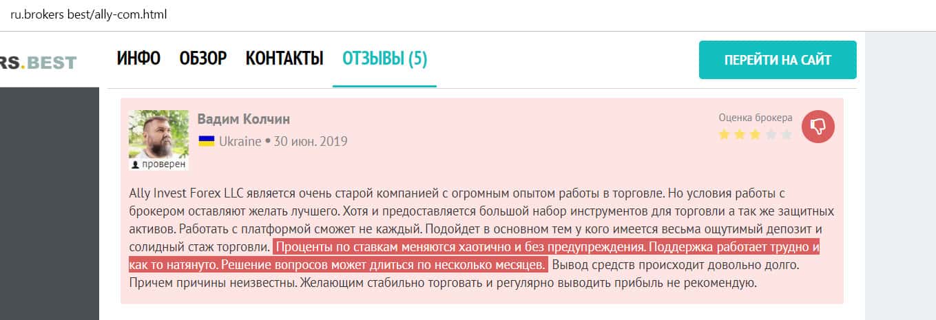 Негативный отзыв о жульнической конторе Ally Invest от украинского трейдера на сайте ru.brokers best