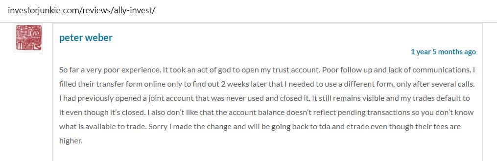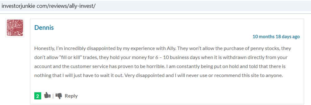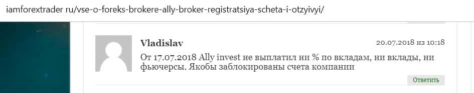 - Условия работы с конторой Ally Invest оставляют желать лучшего - говорит другой пользователь из Украины