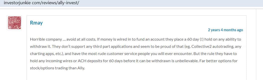 Ужасная компания, которую надо избегать любой ценой - так отозвался о аферистах из Ally Invest еще один иностранный трейдер