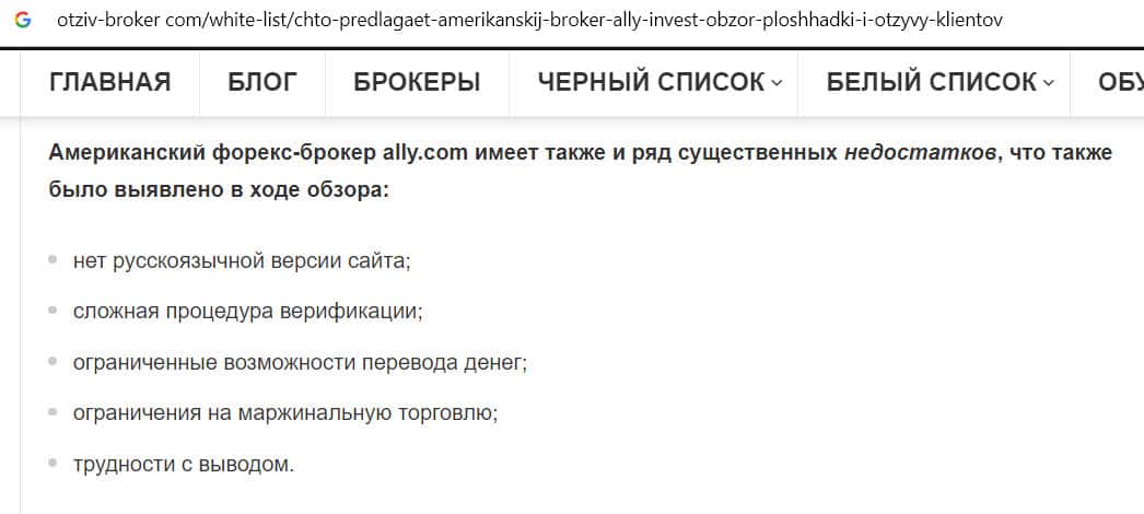 - Что говорит о мошеннической компании Ally Invest сайт iamforextrader ru?