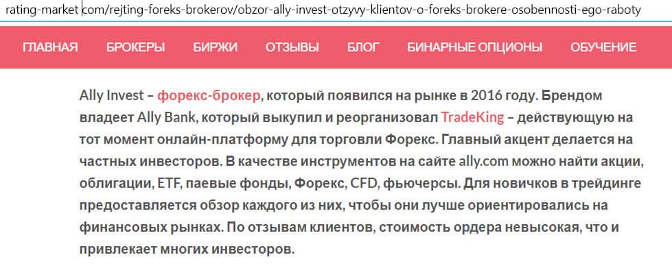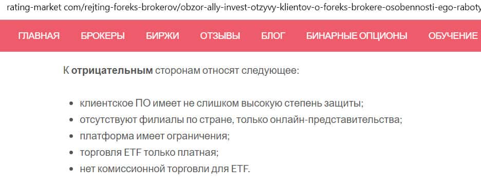 - Какие минусы в деятельности сомнительного брокера Ally Invest нашел сайт rating-market com?
