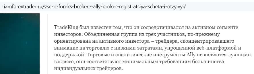 Что можно сказать о компании TradeKing? На тот момент это была дешевая скам-площадка, менеджеры которой разводили доверчивых людей на деньги. Об этом свидетельствует множество отзывов в сети. Понятно, что после выкупа этой конторы организацией Ally Bank ничего не поменялось.
