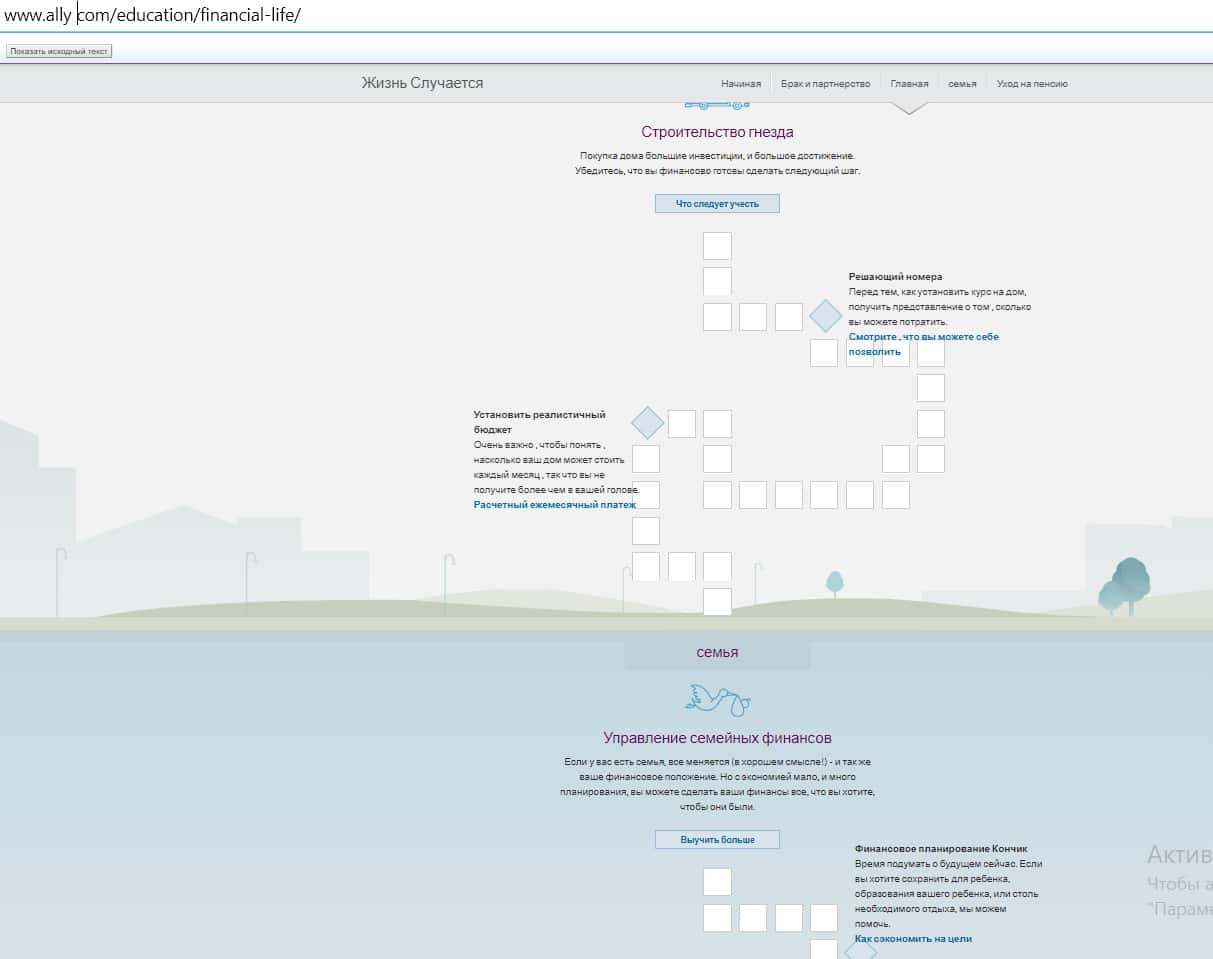 Несмотря на то, что сайт Эллай состряпан достаточно просто, он имеет множество разделов, нацеленных на запудривание мозгов простых людей. Например, есть вкладка Обучение, на которой расписывается вся жизнь клиента, начиная с заключения брака до ухода на пенсию. На каждом этапе компания Эллай помогает своими ценными советами сделать жизнь лучше.