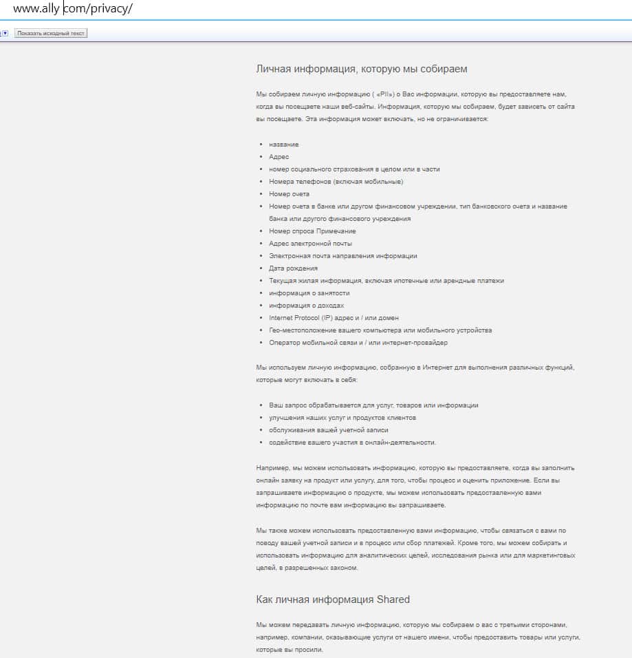 - Что сказано в политике конфиденциальности конторы Ally Invest?