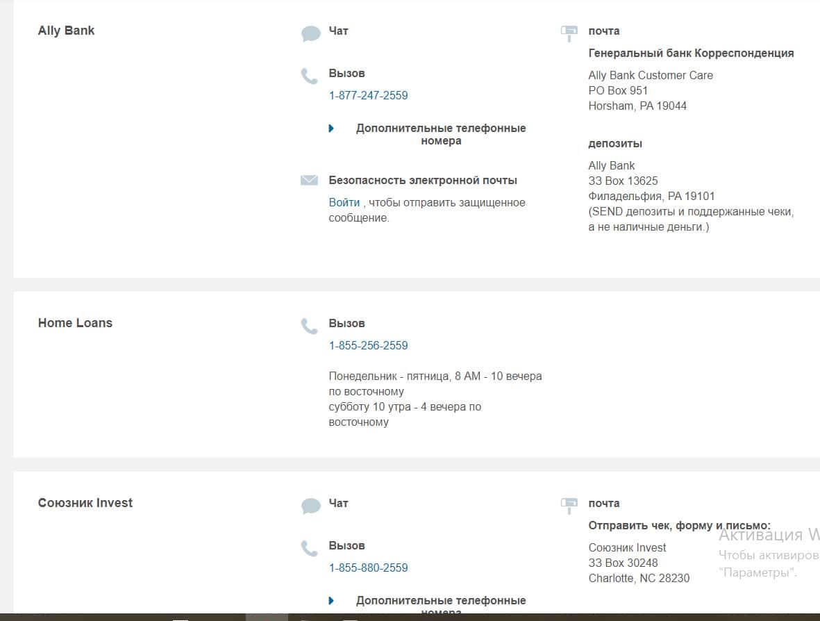 Почтовый адрес Ally Bank Customer Care PO Box 951 Horsham, PA 19044