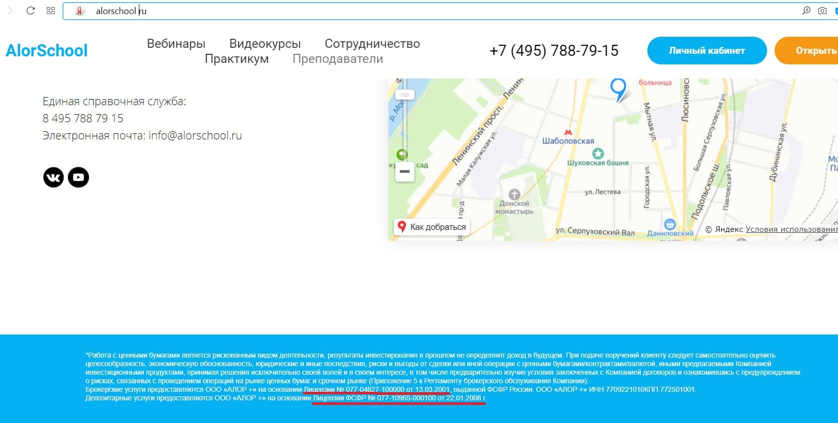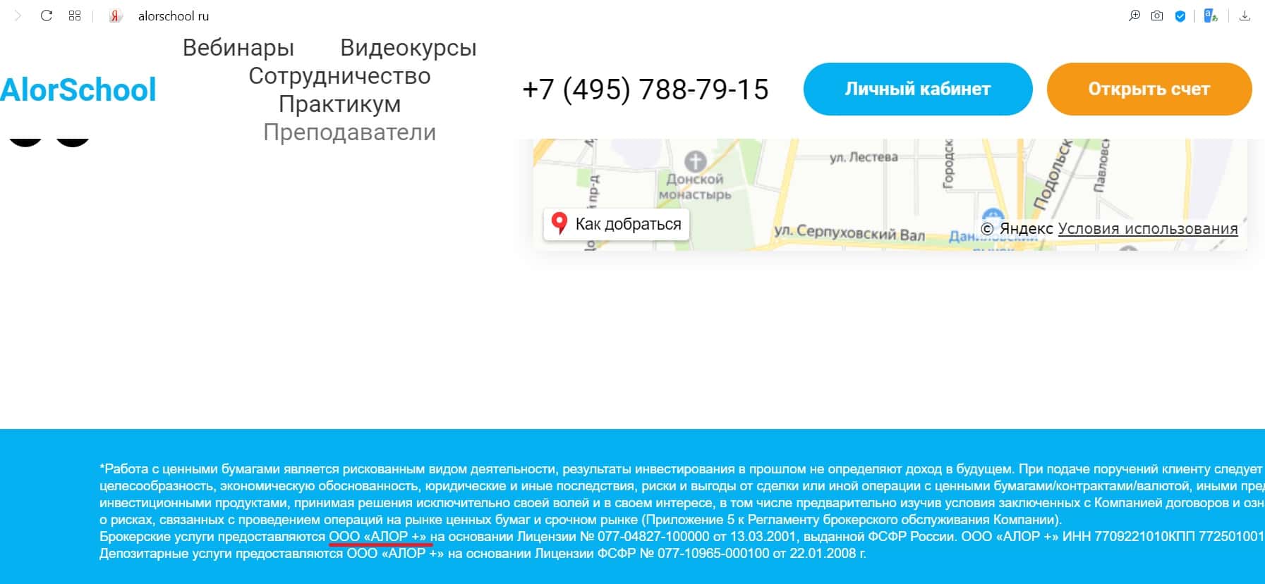 Мошенники из шараги под названием AlorSchool Ru могут сами звонить людям, навязывая свои услугу по обучению инвестированию и торговле на форекс. Телефонный номер один: