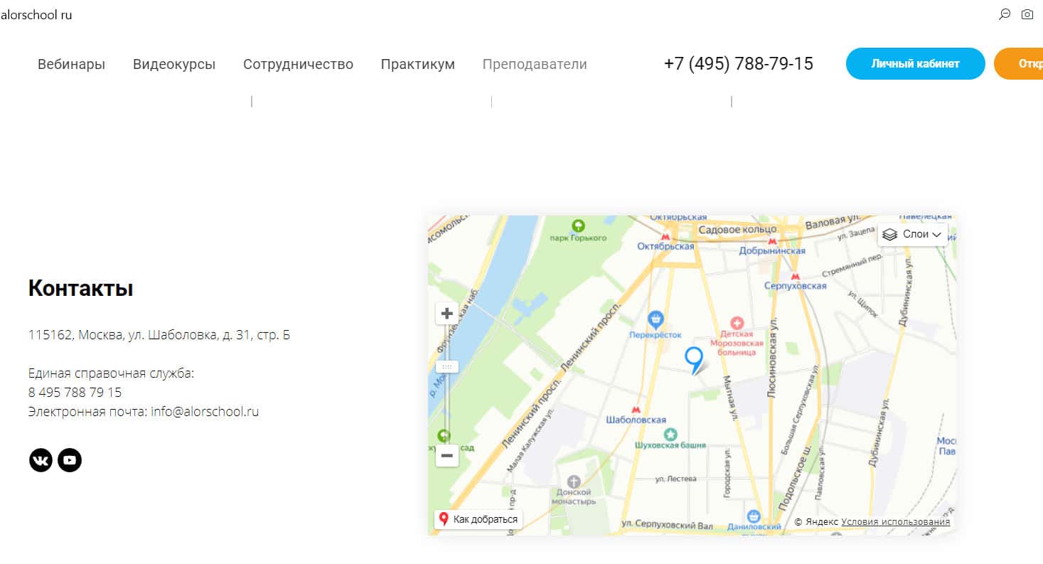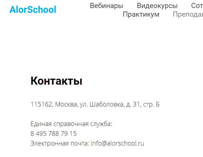 - Телефонные номера и другие контакты конторы Алор Скул: 84957887915