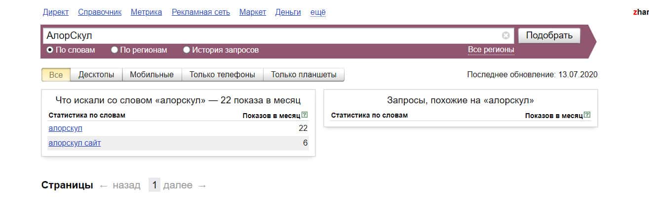 То же название на русском языке, но без пробела "АлорСкул" люди забивали в поисковик всего 22 раза, не так у и много.