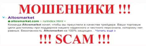 Альтос Маркет - еще один брокер-мошенник, орудующий на территории стран СНГ и кидают там людей чуть ли ни ежедневно, например на публикации ниже предлагается вашему вниманию жалоба на данную контору аферистов, которая оставила человека без денег, ведь работает ALTOSmarket лишь на ввод клиентских средств.