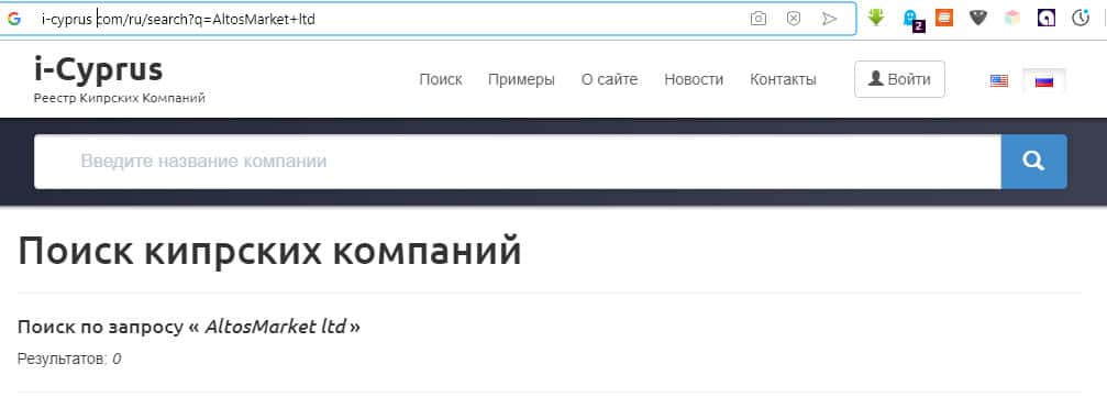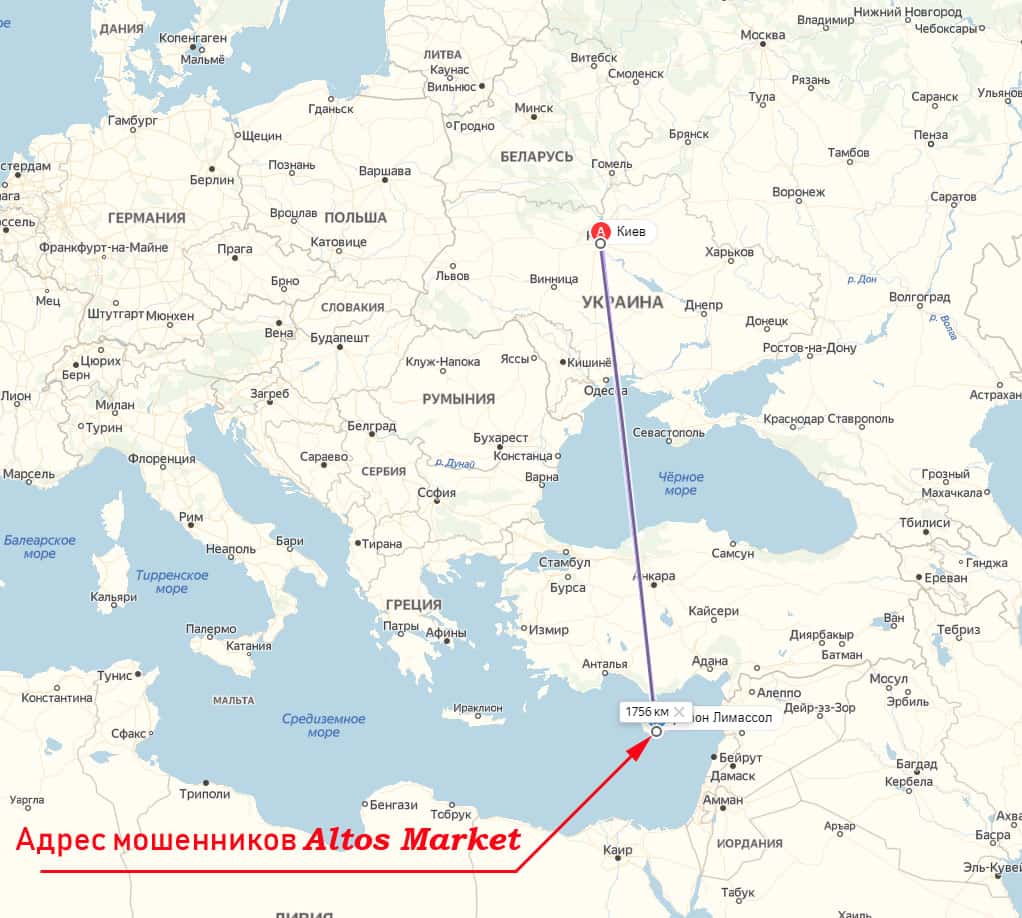 Стремясь избежать ответственности за свои противоправные действия, мошенники, подобные Altos Market, регистрируют и размещают свои компании на далеких островах, вне зоны досягаемости простого смертного, а также вне действия жесткого законодательства. Поэтому мошенническая контора Altos Market расположилась в оффшорной зоне острова Кипр.