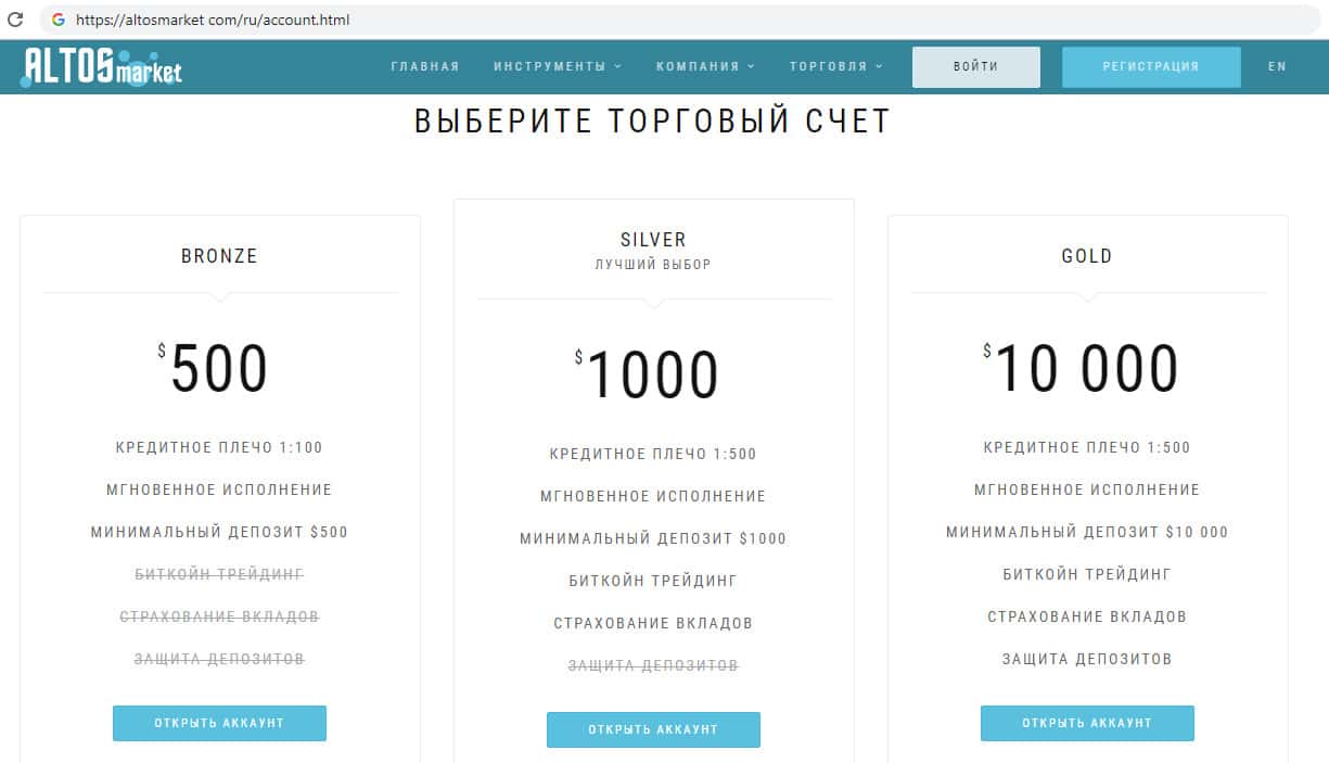 К своим достоинствам администрация Альтос Маркет относит индивидуальный подход в вопросах составления программы обучения новичка в финансовой торговле, широкий выбор аккаунтов для различный вкус и требования трейдера, безопасность и надежность своей торговой площадки, широкий спектр технического и фундаментального анализа рынка менеджерами компании.