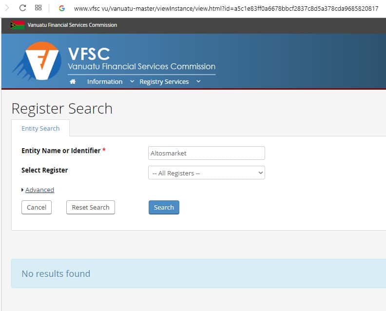 Такая же мистика с лицензией Альтос Маркет в Республике Вануату