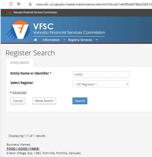 А идентификационный номер компании 14458, нарисованный в лицензии, относится к компании FOOD IGOOD.