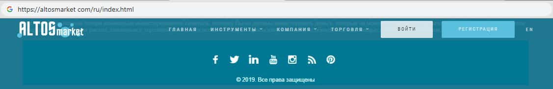 Особого внимания заслуживает поддержка торговой площадки Альтос Маркет в социальных сетях. О чем может думать солидная компания, размещая логотипы социальных сетей? Статическая картинка без ссылок вызывает как минимум удивление. Этот приём использован для красоты или должен подчеркнуть солидность и востребованность брокера?