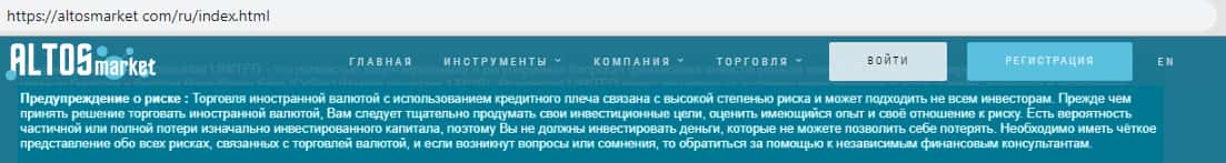 Как же без предупреждения о рисках на торговой площадке Альтос Маркет?