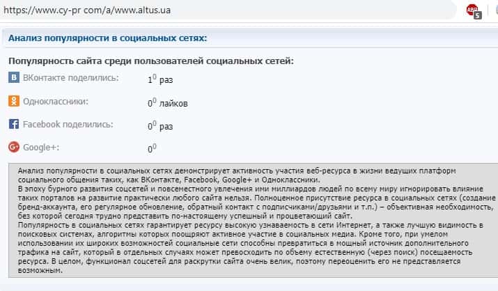 Согласно исследованиям аналитиков информационного канала cy-pr com, востребованность официального сайта компании по управлению активами Альтус Ассетс Активитис (Altus Uа) среди пользователей социальных сетей крайне низкая и стремится к нулю.