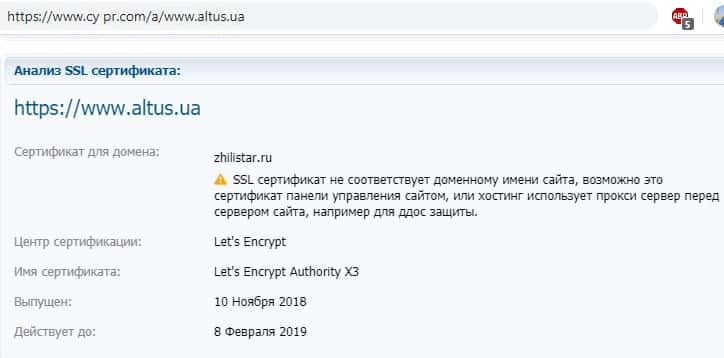 - Несоответсвие SSL-сертификата доменному имени сайта компании по управлению активами Altus Uа