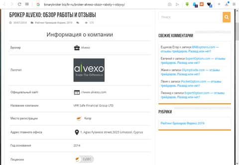 Broker bset дал оценку работе брокерской конторы АлвексоИнформация об Алвексо на сайте binarybroker biz
