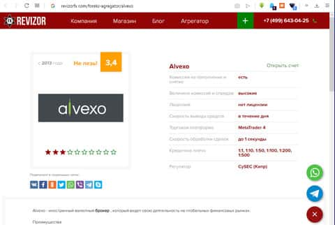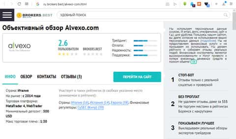 Рейтинг Алвексо на сайте ratingfx составляет всего лишь 1 звезду из 10Brokers best дал оценку работе брокерской конторы Alvexo