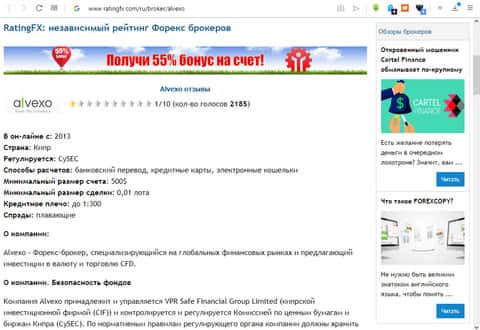 Алвексо пиарится через многие сайты информационного характера, в том числе ФорексВизионRevizorfx скрывает деятельность Алвексо от своих посетителей сайта