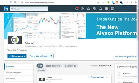 В социальной сети LinkedIn, довольно популярной в глобальной сети интернет, создана группа нашей конторы Алвексо, которая постит на своей странице множество записей с финансовыми новостями, которые имеют отношение к брокерству. Написание постов тут уже давным-давно было заброшено. Последняя запись - 9 месяцев назад. Поэтому можно с уверенностью сказать, что Алвексо - лохотрон и скам.