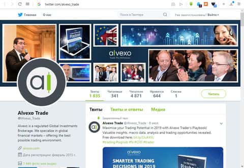 Страница Алвексо в социальной сети Твоттер с 3,5 тысячами подписчиковОбзор на главную страницу сервиса Алвексо