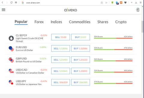 Представление курсов валют, ценных бумаг и акций на сайте АлвексоПлатформы для трейдинга у данного брокера Алвексо