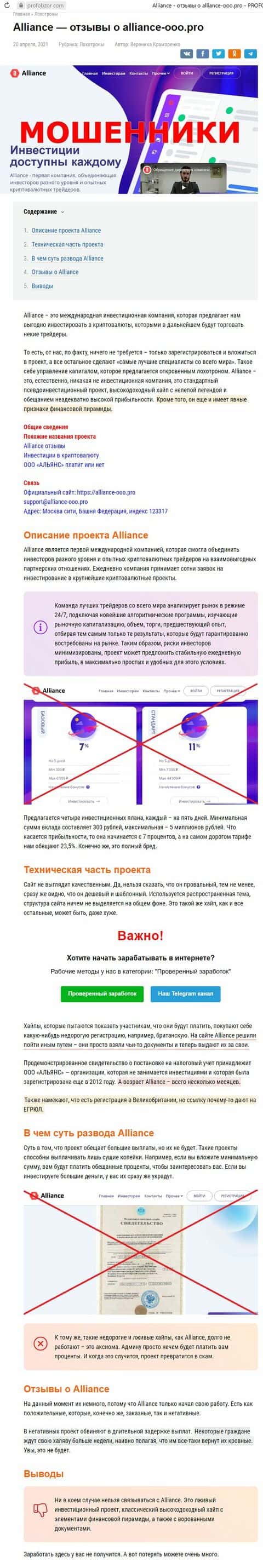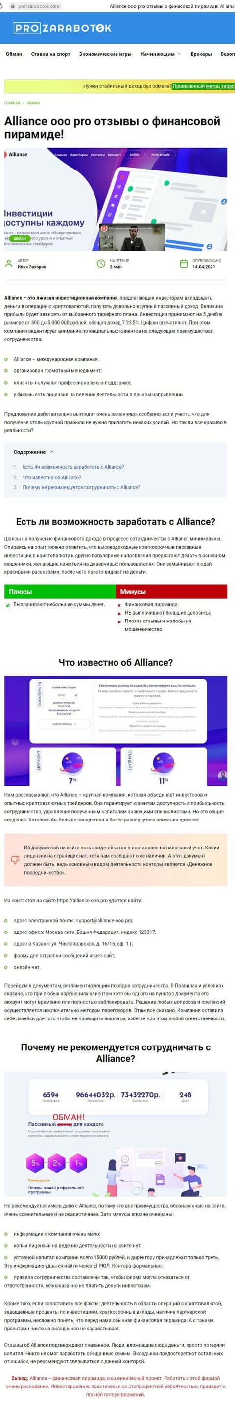 Обзорные статьи о нелегальной фуфлотрейдерской шарашке Alliance-OOO Pro