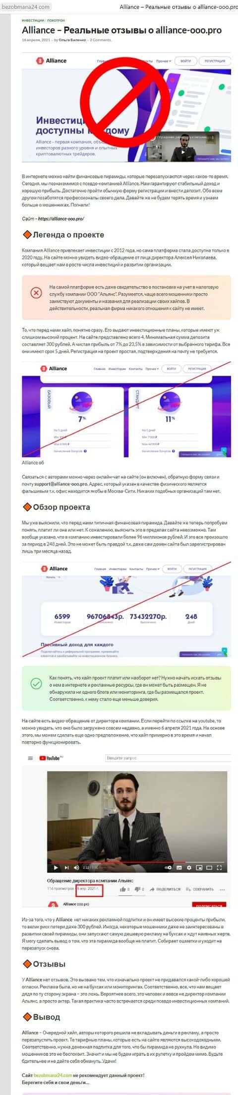 Далее предлагаем увидеть разоблачение мошеннического проекта Альянс ООО.