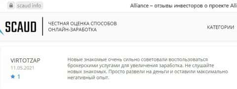 - Отзывы о деятельности мутноброкеров Альянс ООО, которые стали появляться в интернете