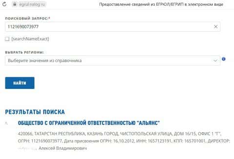 egrul nalog ru - государственный реестр юридических лиц (справочник ФНС)