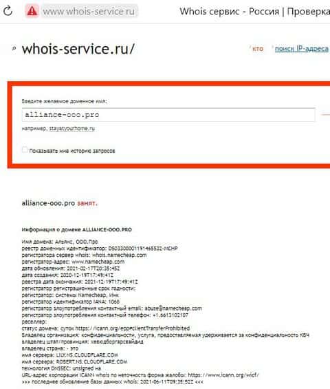 При анализе сайтом whois-service ru не было найдено никакой информации о владельце домена alliance-ooo pro. Это свидетельствует исключительно о мошеннической сущности шарашки Альянс ООО.