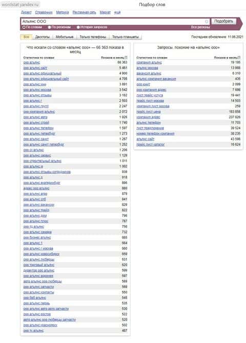 - Анализ количества поисковых запросов бренда Альянс ООО в системе Яндекс